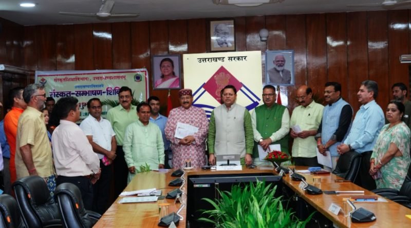 देहरादून।  राज्य की द्वितीय राजभाषा संस्कृत के संरक्षण-संवर्धन एवं संस्कृत को जनभाषा बनाने के उद्देश्य से उत्तराखंड सचिवालय परिसर में ‘संस्कृत संभाषण शिविर’ का आयोजन किया जा रहा है। जिसका शुभारम्भ मुख्यमंत्री पुष्कर सिंह धामी के द्वारा सभी कैबिनेट मंत्रियों एवं मुख्य सचिव की उपस्थिति में किया गया।