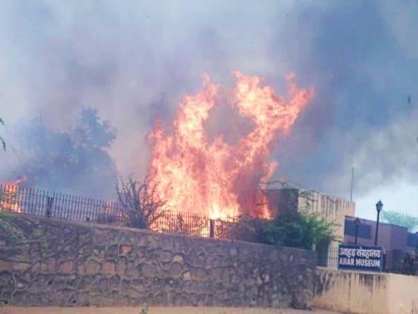उदयपुर, राजस्थान में उदयपुर के आहड़ संग्रहालय रविवार को भीषण आग की लपटों से घिर गया। हालांकि इसमें किसी तरह की बड़ी हानि नहीं हुई, लेकिन पेड़-पौधे जलकर खाक हो गए। चार घंटे की कड़ी मशक्कत के बाद दमकल विभाग ने आग पर काबू पा लिया। उदयपुर के प्रतापनगर रेलवे स्टेशन के समीप प्रदेश के इकलौते स्थल आहड़ संग्रहालय में अचानक आग लग गई। आग की लपटें इतनी तीव्र थी कि एक किलोमीटर की दूरी से दिखाई देने लगीं। मिट्टी के टीलों पर स्थित आहड़ संग्रहालय परिसर में बड़ी संख्या में पेड़ तथा झाड़ियां लगी थी। आग में पेड़-पौधों को बड़ा नुकसान पहुंचा है। पहाड़ियों के बीच चार हजार साल पुरानी आहड़ सभ्यता के कई स्थान हैं, जिन्हें देखने देश-विदेश के पर्यटक उदयपुर आते हैं। स्थल संग्रहालय परिसर में यहां से निकले पात्र तथा अन्य वस्तुओं को प्रदर्शित करने के लिए संग्रहालय बना हुआ है। यह संग्रहालय भी आग से घिर गया, लेकिन किसी तरह का नुकसान नहीं हुआ है।