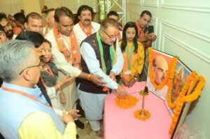 देश के प्रधानमंत्री नरेंद्र मोदी के कुशल मार्ग दर्शन और मुख्यमंत्री पुष्कर सिंह धामी के नेतृव में प्रदेश में दिन प्रतिदिन दिन विकास के नए आयाम स्थापित कर रहा है। उन्होंने कहा प्रदेश में स्वास्थ्य, सड़क एवं हवाई कनेक्टविटी, पर्यटन जैसे अनेक क्षेत्रों में निरंतर कार्य किया जा रहा है। मंत्री जोशी ने कहा कृषि के क्षेत्र में आज प्रदेश में अनेक कदम उठाए जा रहे है। उन्होंने कहा कि प्रधानमंत्री नरेंद्र मोदी ने संकल्प लिया है कि 2030 तक भारत विश्व के नंबर एक उत्पादक देश होगा। उन्होंने कहा हम उस पार्टी के सदस्य है जिसका नेता विश्व का सबसे बड़ा नेता है। उन्होंने कहा विश्व की सबसे मजबूत पार्टी है भारतीय जनता पार्टी है। मंत्री गणेश जोशी ने पार्टी के जिला पाधिकारियों को केंद्र और राज्य सरकार की जनकल्याणकारी योजनाओं के बारे में जानकारी दी। उन्होंने पार्टी के सभी पदाधिकारियों से सरकार की जन कल्याणकारी योजनाओं को जन जन तक पहुंचाने का आव्हान किया। मंत्री जोशी ने कहा देश के प्रधानमंत्री नरेंद्र मोदी जी के कुशल मार्गदर्शन और प्रदेश के मुख्यमंत्री श्री पुष्कर सिंह धामी जी के नेतृत्व में हमारी सरकार किसानों की आय की आय दोगुनी करने के लिए निरंतर प्रयास कर रही है। मंत्री ने कहा आज मिलेट्स (मंडवा) जिसे पहले पहले गरीबों की थाली का भोजन कहा जाता था। उसे आज देश के प्रधानमंत्री नरेंद्र मोदी के प्रयासों से अंतराष्ट्रीय स्तर पर पहचान मिल रही है। उन्होंने कहा मोदी जी की दूरदर्शिता के कारण वर्ष 2023 को अंतर्राष्ट्रीय मिलेट वर्ष घोषित किया गया है। उत्तराखंड में मिलेट्स के लिए धामी सरकार ने 73 करोड़ रुपए की व्यवस्था की है। मंत्री जोशी ने भरोसा जताते हुए कहा कि सरकार का संकल्प है जब राज्य 25 वर्ष का होगा तो कृषि उद्यान श्री अन्न बागवानी सभी में हम अपने उत्पाद को दोगुना करेंगे। इस दिशा में प्रदेश सरकार लागतार कार्य कर रही है। इस अवसर पर महानगर अध्यक्ष सिद्दार्थ उमेश अग्रवाल, प्रदेश उपाध्यक्ष मयंक गुप्ता, मेयर सुनील उनियाल गामा, महानगर महामंत्री सुरेन्द्र राणा, मंडल अध्यक्ष प्रदीप रावत, ज्योति कोटिया, राकेश रावत सहित श्रीदेव सुमन नगर, मसूरी एवं शहीद दुर्गामल मण्डल के सभी पदाधिकारी, बूथ अध्यक्ष एवं पार्षद उपस्थित रहे।