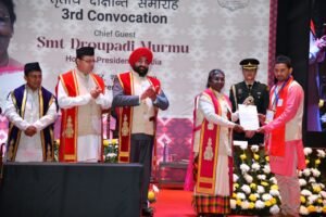 देहरादून। राष्ट्रपति द्रोपदी मुर्मु ने शुक्रवार को दून विश्वविद्यालय के तृतीय दीक्षांत समारोह में 36 मेधावी छात्र-छात्राओं को सम्मानित किया। समारोह में वर्ष 2021 के स्नातक, परास्नातक एवं पी.एच.डी के 669 विद्यार्थियों को उपाधि प्रदान की गई। स्वर्ण पदक प्राप्त करने वाले 36 विद्यार्थियों में 24 छात्राएं शामिल थीं। जिन्होंने विश्वविद्यालय के दीक्षांत समारोह की थीम ‘उभरती नारी शक्ति’ को चरितार्थ किया। राष्ट्रपति द्रौपदी मुर्मु ने देवभूमि उत्तराखंड को नमन करते हुए कहा कि आज दून विश्वविद्यालय के दीक्षांत समारोह में भाग लेकर उन्हें बहुत खुशी हो रही है। डिग्री और मेडल प्राप्त करने वाले विद्यार्थियों को बधाई देते हुए उन्होंने कहा कि इस दिन की स्मृति इन विद्यार्थियों के जीवन-यात्रा के सबसे यादगार अनुभव में से एक रहेगी। आज इन विद्यार्थियों का एक सपना साकार हो रहा है। उन्होंने आशा व्यक्त की कि यह विश्वविद्यालय शिक्षा के विभिन्न मानकों पर एक उत्कृष्ट संस्थान के रूप में अपनी पहचान बनाएगा। राष्ट्रपति ने कहा कि किसी भी देश की प्रगति, उसके मानव संसाधन की गुणवत्ता पर निर्भर होती है। मानव संसाधन की गुणवत्ता, शिक्षा की गुणवत्ता पर निर्भर करती है। आज का युवा, कल का भविष्य है, इस सूत्र वाक्य को अंगीकार करते हुए, दून विश्वविद्यालय को सिर्फ राज्य स्तर पर ही नहीं, बल्कि राष्ट्रीय स्तर पर गुणवत्तापरक मानव संसाधन तैयार करने की दिशा में कार्यरत रहना है।