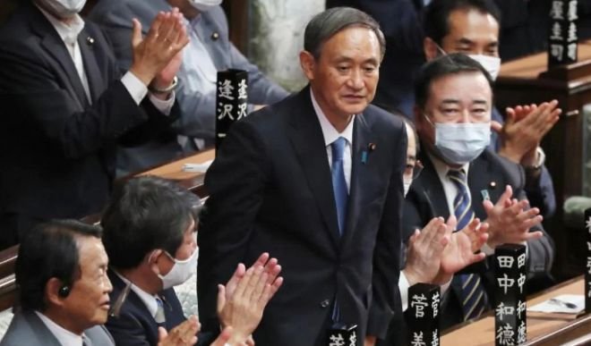 सुगा को सोमवार को जापान की सत्तारूढ़ लिबरल डेमोक्रेटिक पार्टी का नया नेता चुना गया था और इसके साथ ही