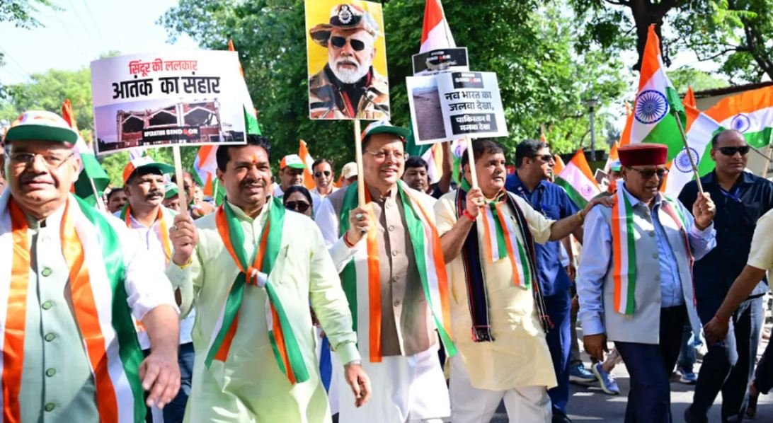 उत्तराखंड के मुख्यमंत्री पुष्कर सिंह धामी के नेतृत्व में शौर्य स्थल से गांधी पार्क तक तिरंगा शौर्य सम्मान यात्रा का आयोजन किया गया। यह यात्रा ऑपरेशन सिंदूर की विजय को समर्पित थी। मुख्यमंत्री धामी ने कहा कि नया भारत हर आतंकी कार्रवाई का जवाब उसी की भाषा में देगा। उन्होंने युवाओं से सेना और सुरक्षा बलों से प्रेरणा लेने का आह्वान किया।