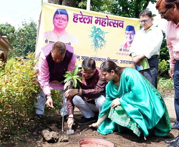 देहरादून। मुख्यमंत्री पुष्कर सिंह धामी ने हरेला पर्व के अवसर पर मुख्यमंत्री आवास परिसर में वृक्षारोपण किया। उन्होंने आम की पूषा श्रेष्ठ प्रजाति का पौधा लगाया। मुख्यमंत्री ने कहा कि हरेला प्रकृति के संरक्षण एवं संवर्द्धन का पर्व है। हरेला पर्व के उपलक्ष्य में प्रदेश में सामाजिक संगठनों, संस्थाओं एवं विभागों के माध्यम से व्यापक स्तर से वृक्षारोपण किया जाएगा। मुख्यमंत्री ने कहा जल संरक्षण एवं जल धाराओं के पुनर्जीवन की दिशा में राज्य में अनेक प्रयास किए जा रहे हैं। प्रधानमंत्री नरेन्द्र मोदी द्वारा देश में जल संरक्षण और संवर्द्धन के लिए सभी को आगे आने का अहवाहन किया गया है। राज्य में इस दिशा में तेजी से कार्य हो रहे हैं। राज्य में 1200 से अधिक अमृत सरोवर बनाए गए हैं। इस दिशा में आगे भी लगातार कार्य होंगे। हरेला पर्व के अवसर पर गीता पुष्कर धामी एवं कैबिनेट मंत्री गणेश जोशी ने भी वृक्षारोपण किया। इस अवसर पर मुख्यमंत्री आवास में विभिन्न प्रजातियों के 51 पौधे लगाए गए। इस अवसर पर अपर सचिव रणवीर सिंह चैहान, मुख्य वन संरक्षक वन पंचायत डॉ. पराग मधुकर धकाते, मुख्य उद्यान अधिकारी डॉ. मीनाक्षी जोशी, उद्यान प्रभारी दीपक पुरोहित उपस्थित थे।
