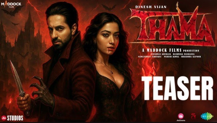 मैडॉक फिल्म्स का हॉरर-कॉमेडी यूनिवर्स लगातार दर्शकों को चौंकाता रहा है। ‘स्त्री’ और ‘स्त्री 2’ की सफलता के बाद अब इस फ्रेंचाइज़ी की अगली पेशकश है ‘थामा’। खास बात यह है कि इस बार कहानी हॉरर और कॉमेडी के साथ एक लव स्टोरी को भी पेश करेगी। फिल्म में आयुष्मान खुराना और रश्मिका मंदाना की जोड़ी पहली बार साथ नजर आएगी। आज इसका टीजर रिलीज हुआ है, जिसने फैंस की उत्सुकता और बढ़ा दी है।