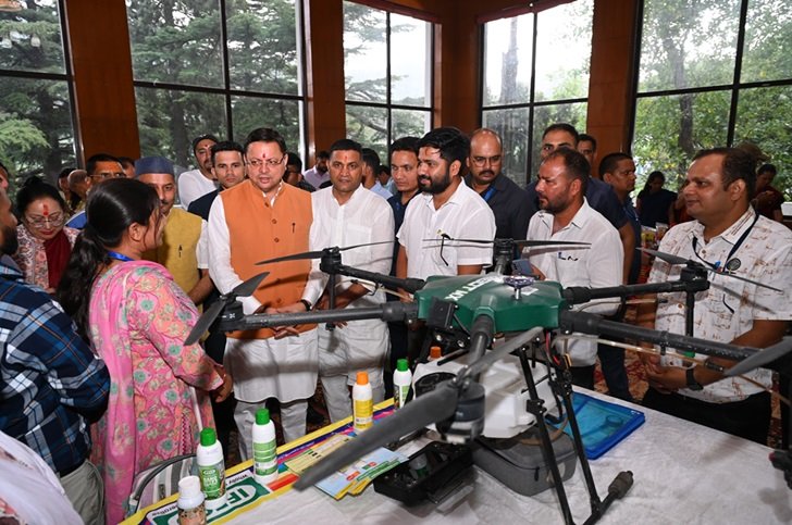 इस दौरान क़ृषि एवं कृषक कल्याण विभाग ने माया नेगी पुत्री मोती सिंह नेगी गॉव गिनती विकास खंड कोटाबाग को 2023-24 में राष्ट्रीय क़ृषि विकास योजना के तहत ड्रोन क़ृषि कार्य हेतु प्रदान किया गया। जिसका कुल मूल्य 10 लाख एवं अनुदान 7.50 लाख डी. बी. टी. के माध्यम से कृषक भुगतान किया गया। पूनम दुर्गापाल गांव हिम्मतपुर विकासखंड हल्द्वानी को 2023-24 में इफको योजना के तहत ड्रोन दीदी योजना के तहत प्रदान किया गया। इसका कुल मूल्य दस लाख एवं अनुदान मूल्य 10 लाख डी. बी. टी. के माध्यम से कृषक को भुगतान किया गया। जबकि अर्जुन सिंह रावत पुत्र सुदर्शन सिंह रावत गांव नंदपुर न्याय पंचायत चिल्किया विकासखंड रामनगर की 2023-24 में योजना युवा स्वरोजगार (इफको) के तहत स्वरोजगार के अंतर्गत प्रदान किया गया। जिसका कुल मूल्य 10 लाख एवं अनुदान मूल्य 10 लाख डी. बी. टी. के माध्यम से भुगतान किया गया। इस दौरान कृषकों को प्रमाण पत्र देकर सम्मानित किया गया। मुख्यमंत्री पुष्कर सिंह धामी ने विभिन्न विभागों द्वारा कृषि उत्पादों से संबंधित लगाए गए स्टॉल का निरीक्षण कर उत्पादों की भी जानकारी ली।