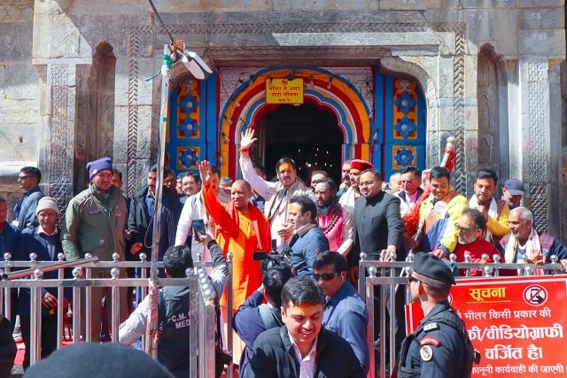 देहरादून। मुख्यमंत्री उत्तर प्रदेश योगी आदित्यनाथ ने रविवार को केदारनाथ धाम पहुँच कर बाबा केदार के दर्शन एवं रूद्राभिषेक किया। उन्होंने भगवान केदारनाथ से विश्व में सुख समृद्धि एवं जनकल्याण की कामना करते हुए बाबा केदारनाथ का आशीर्वाद प्राप्त किया। तकरीबन दो घंटे के भ्रमण कार्यक्रम के दौरान केदारपुर में लगातार जय श्री राम एवं हर-हर महादेव के नारे लगते रहे। जहां से भी मुख्यमंत्री योगी गुजरते वहां उनके अभिवादन को खड़े श्रद्धालु जयकारे लगाते। जवाब में मुख्यमंत्री योगी आदित्यनाथ ने भी श्रद्धालुओं का अभिवादन कर जय श्री राम एवं बाबा केदार के जयकारे लगाए।