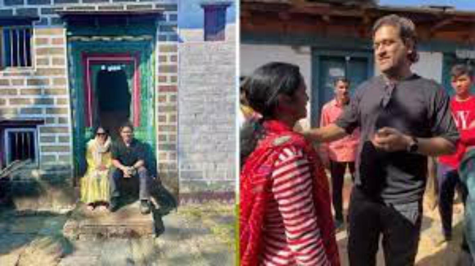 एक किमी पैदल चलकर गांव पहुंचे धोनी