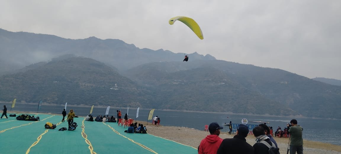 उत्तराखण्ड पर्यटन विकास परिषद् के तत्वाधान में आयोजित ‘टिहरी एक्रो फेस्टिवल‘ के चैथे दिन सोमवार को देश विदेश के पैराग्लाइडिंग पायलटो द्वारा हवा में पैराग्लाईडिंग से सम्बन्धित विभिन्न प्रकार की गतिविधियां की गई। देश विदेश के पायलट्स के द्वारा सिंक्रो फ्लाईंग एवं विंग शूट जम्प तथा स्काई डायविंग, एक्रो एवं एस.आई.वी. कम्पटीशन की तृतीय चरण, की प्रतियोगिता सफलतापूर्वक सम्पन्न की गयी। उक्त प्रतियोगिताएं जज फेरदी टॉय, किट डॉयरेक्टर जंगीश एवं इवेंट डायरेक्टर श्री तानाजी टाकवे की देख-रेख में सम्पन्न हुयी।