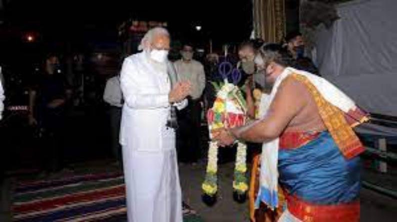 इससे पहले पीएम मोदी गुरुवार देर शाम ही तमिलनाडु पहुंच गए थे। देर शाम तमिलनाडु पहुंचने के बाद प्रधानमंत्री नरेंद्र मोदी ने सबसे पहले मदुरै के प्रसिद्ध मीनाक्षी मंदिर में पूजा अर्चना की। इस खास मौके पर प्रधानमंत्री नरेंद्र मोदी पारंपरिक कपड़ों में नजर आए। मंदिर पहुंचने पर मीनाक्षी सुंदरेश्वरर मंदिर में उनका जोरदार स्वागत किया गया।
